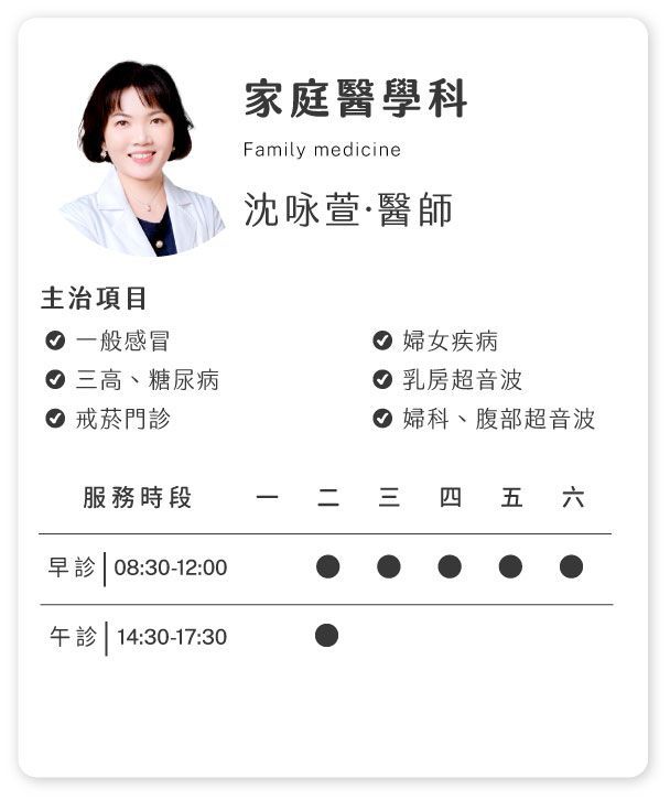 上午 08:30 – 12:00、下午 02:30 – 05:30、晚上 06:30 – 09:30